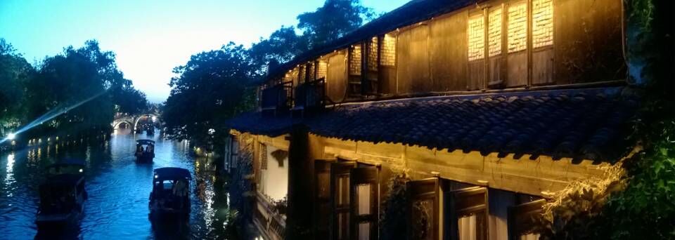 乌镇,黛瓦粉墙,飞阁流翠,廊棚逼仄,似水年华,远离城市的繁华与喧嚣,给人一种宁静古朴的感觉?;』锇槊且来斡卫懒宋谡蚨ぞ扒?,西栅景区。登逢源双桥,游财神湾,看财神堂,观拳船、高杆船表演,赏江南百床馆、江南民俗馆、三白酒作坊、蓝印花布印染坊、江南木雕馆等特色馆藏,感受西栅街区内的名胜古迹、手工作坊,自然风光美不胜收。