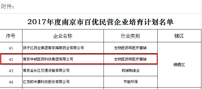 为贯彻落实市委市政府《关于进一步推动民营经济发展的意见》(宁委发﹝2016﹞33号),充分发挥优秀民营企业的示范和带动作用,结合近几年民营企业运行发展情况,经企业申请、各区(开发区)主管部门初审推荐、专家评审和综合考评等程序,华威医药等共105家企业入选“2017年度南京市百优民营企业培育计划”。