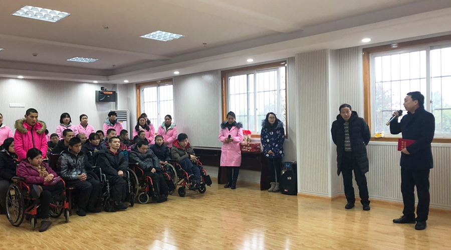爱心活动现场,华威医药集团工会以及行政部特为福利院准备了当下急需的过冬物资。集团工会主席徐峰特向孤残儿童和老人代表送去新年祝福,与福利院的孤残儿童们一起演唱他们精心准备的欢迎歌曲,一首“天之大,手牵手”,让在场的每一位为之动容。最后,华威医药集团一行还参观了孤残儿童的手工作业,为他们分发爱心物资。