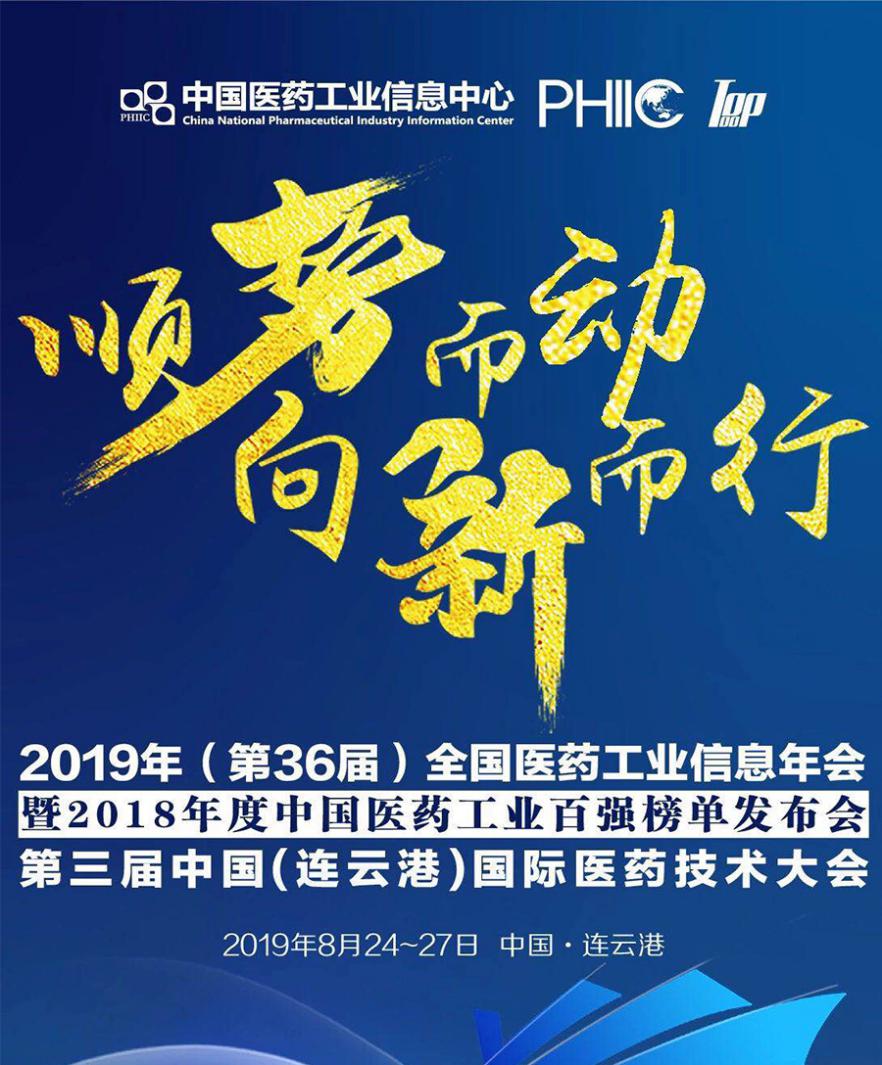 第36届全国医药工业信息年会暨2018年度中国医药工业百强榜单发布、第三届中国(连云港)国际医药技术大会拟定于2019年8月23日—27日在连云港市举办。本次会议邀请各级领导,中国科学院、中国工程院院士,海内外医药技术专家,医院院长,企业高管及业务主管等与会代表约2000人。