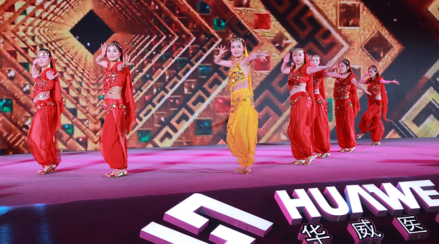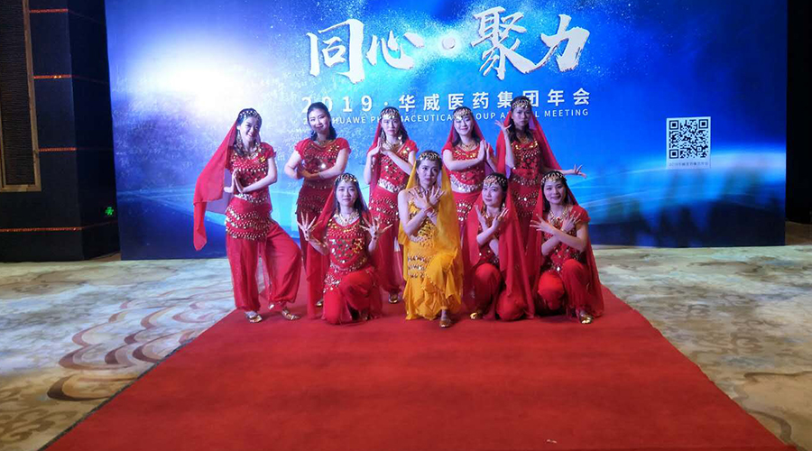 南京华威医药集团创始人、CEO张孝清先生及各部门领导一同上台与《戏说抖音》节目的小伙伴们共舞,燃爆2019年年会,让现场气氛达到最高。