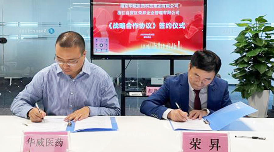 2022年8月26日,在多位领导与专家的共同见证下,浙江自贸区荣昇企业管理有限公司与南京华威医药科技集团有限公司在浙江省舟山普陀国际健康产业中心举行了战略合作签约仪式。荣昇董事长赵洪昇、总经理谢生荣,百花医药轮值总经理荆韬、黄龙生物副总经理许毅等共同出席了签约仪式。