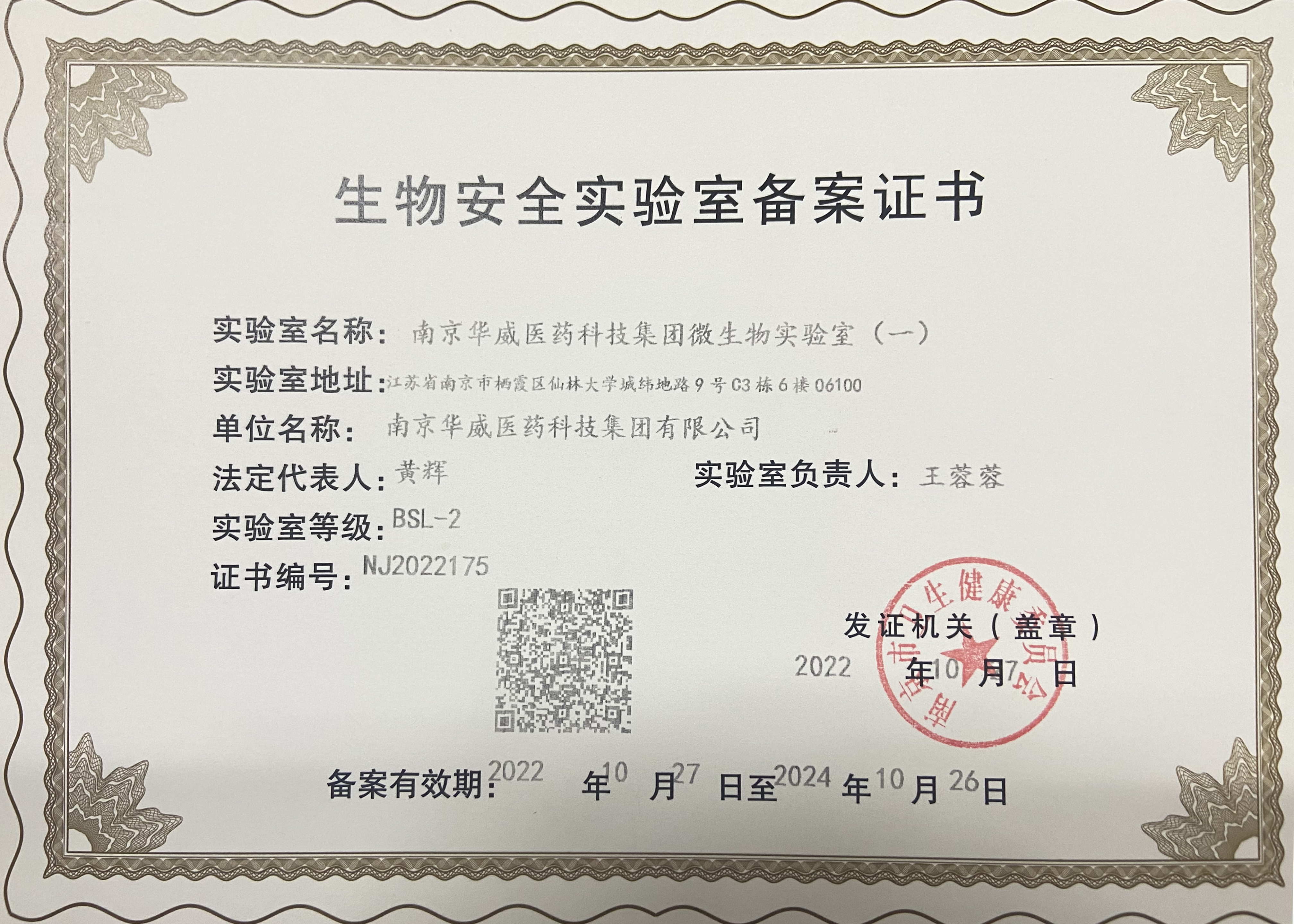 近日,南京华威医药科技集团有限公司两个生物安全实验室顺利通过加强型BSL-2(即P2)等级认证!
