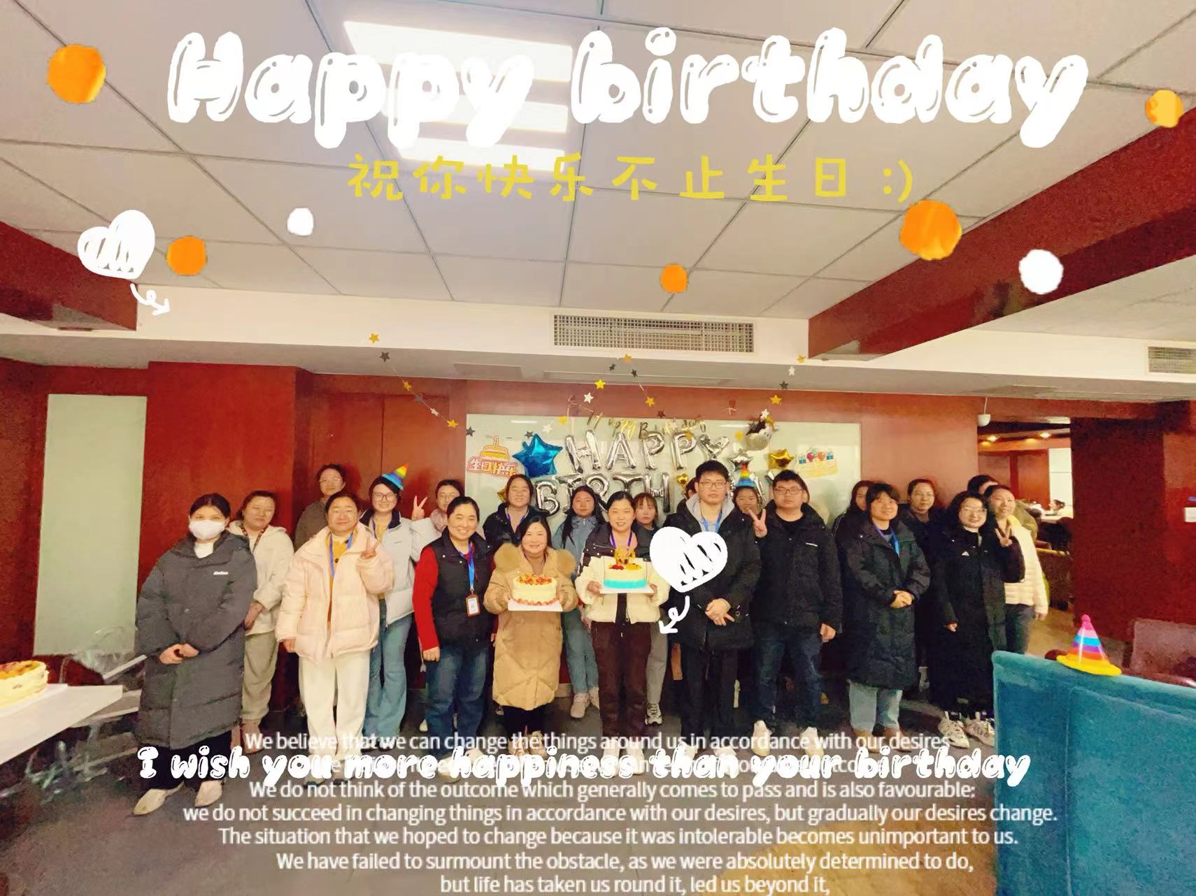 而在这一片欢乐祥和之中,我们又迎来了本月员工的集体生日会。伴随着生日快乐歌的悠扬旋律,公司为本月寿星们送上了精心准备的生日礼物,并一同切开了象征甜蜜与希望的生日蛋糕。此刻,每一张笑脸都映射出公司对员工个人价值的尊重与认可,那一份代表生日的心意,如同元宵节的灯火一般,照亮了每一位员工的心房。