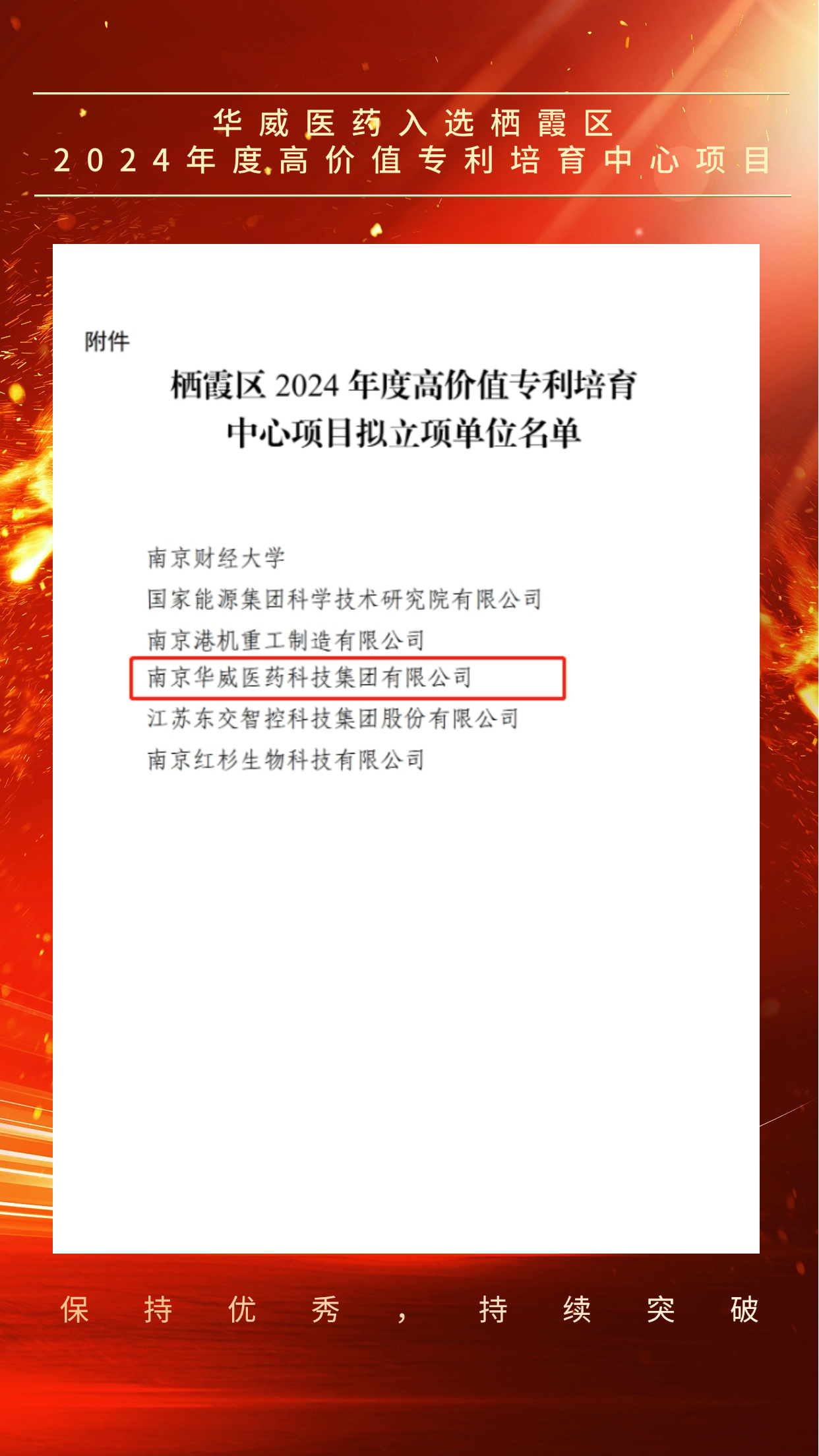 此次成功入选“栖霞区2024年度高价值专利培育中心项目”,标志着华威医药在技术创新、专利布局等方面取得了显著成效。这是对我们过去工作的肯定,更是对未来发展的激励。今后,我们将以此为契机,进一步加强技术创新能力,优化专利管理机制,加快科技成果的转化应用,不断探索和实践新的研发模式,持续提升企业的核心竞争力。