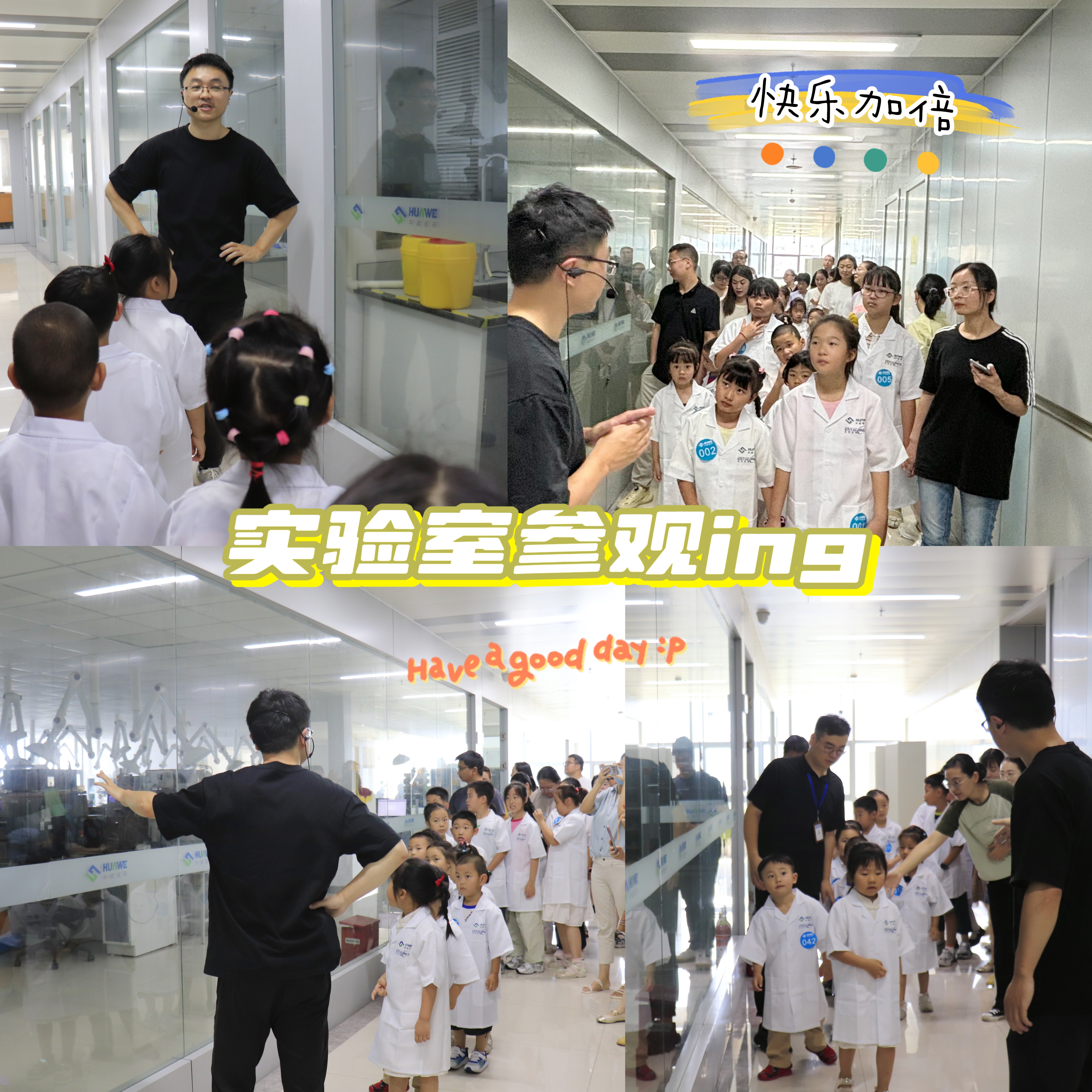 活动从探索华威医药的实验室开始,孩子们首先通过公司宣传片对爸爸妈妈们的工作环境和内容有了一个初步的了解,接着穿上迷你版的实验服,变身小小科学家,跟随着专业的讲解员一起探索医药研发设备。