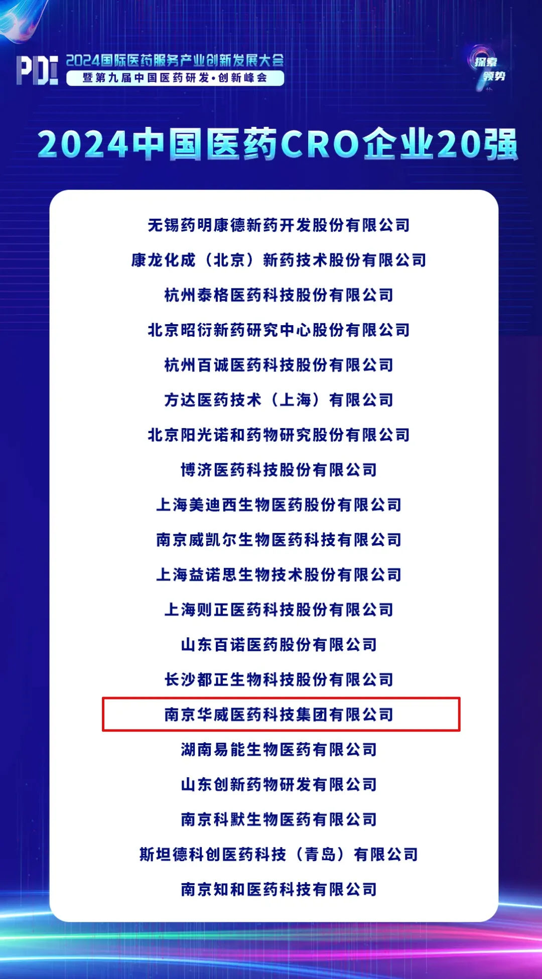 5月22日,在第九十届全国药品交易会与药智网联合发布的“2025中国CRO卓越品牌榜企业20强”中,华威医药凭借卓越的增长潜力、细分领域领导力及创新实力,成功入选榜单并位列第四名。这一殊荣不仅是对华威医药综合实力的高度认可,更是对其在医药研发外包领域持续创新与卓越贡献的充分肯定。