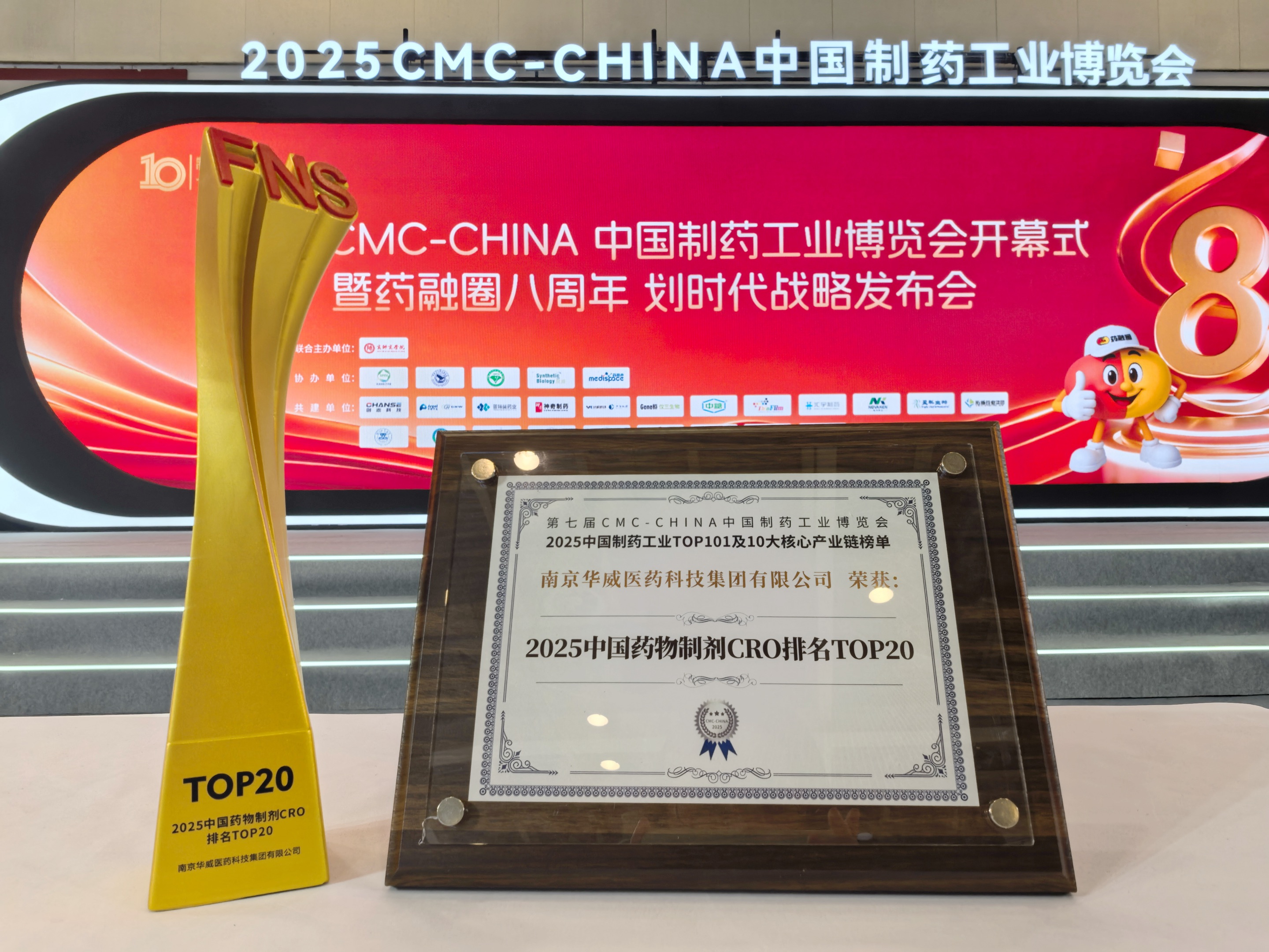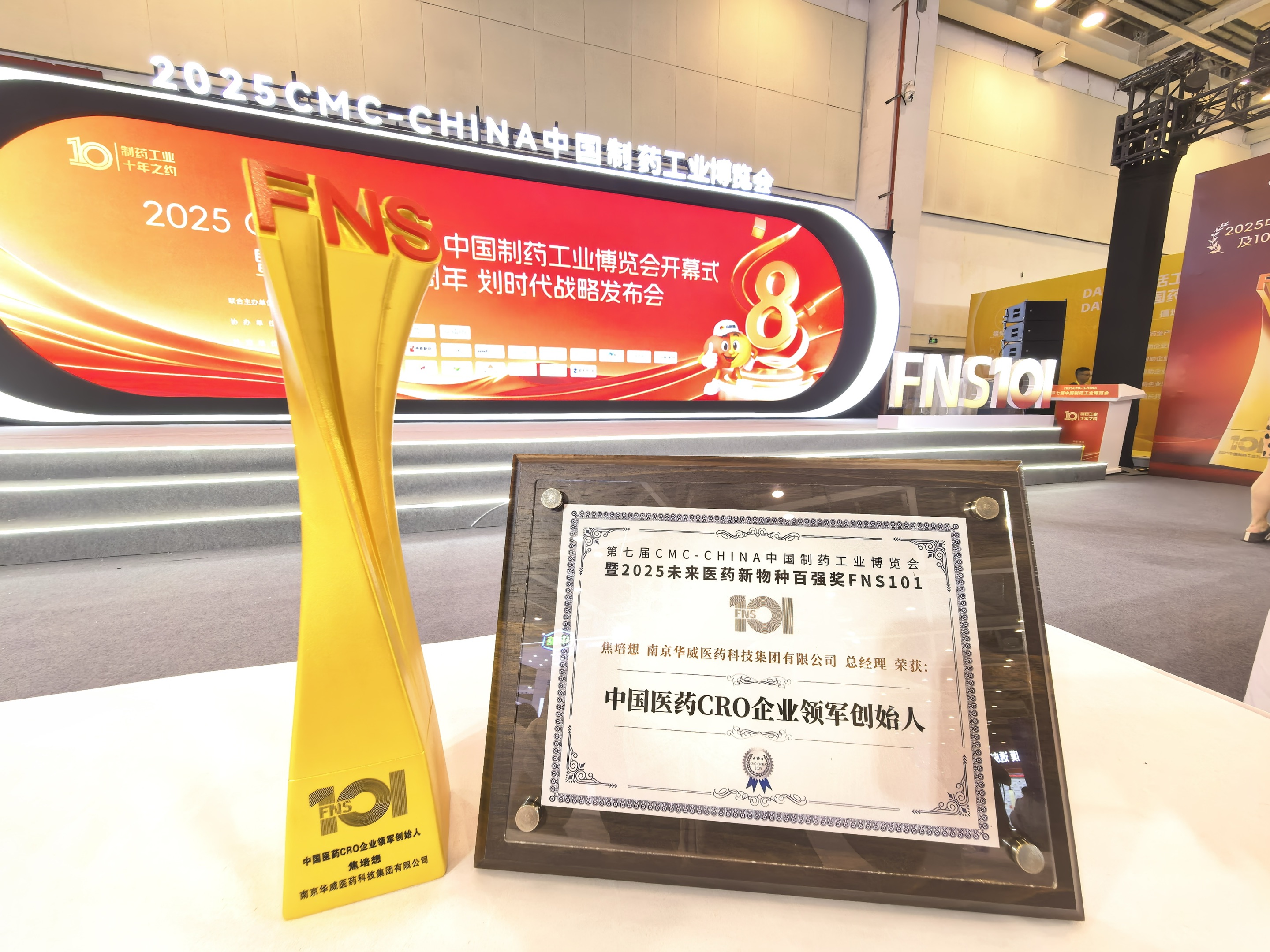 8月1日,在2025CMC-CHINA第七届中国制药工业博览会的盛典上,备受行业瞩目的《2025年中国制药工业TOP101》及10大核心产业链榜单正式揭晓。华威医药凭借卓越的综合实力,一举斩获三项重磅荣誉:强势入选“2025中国药物制剂CRO排名TOP20”、总经理焦培想女士荣膺“中国医药CRO企业领军创始人”称号、同时获评“药融圈2025生态合作伙伴”。三大奖项的加冕,全面彰显了华威医药在技术研发、领导力建设及产业协作方面的标杆地位。