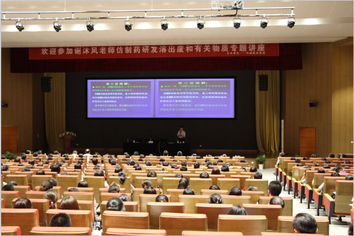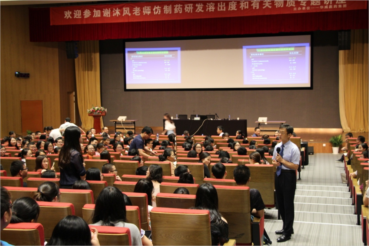 2017年8月26日,南京华威医药科技集团有限公司特邀上海药检所行业资深专家谢沐风老师举办了“仿制药研发溶出度和有关物质”专题讲座。讲座在南京大学国际会议中心顺利举行,华威医药集团制剂/分析部技术人员及业内同行共计400余人参加了此次讲座。