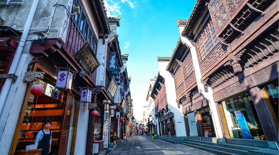 屯溪老街座落在安徽省黄山市屯溪区中心地段,北面依山,南面傍水,包括1条直街、3条横街和18条小巷,由不同年代建成的300余幢徽派建筑构成的整个街巷,是中国目前保存最完整、最具有南宋和明清建筑风格的古代街市。小伙伴们在此驻足游览,品尝美食,三五成群,一张张青春的笑脸写满了幸福与眷恋。