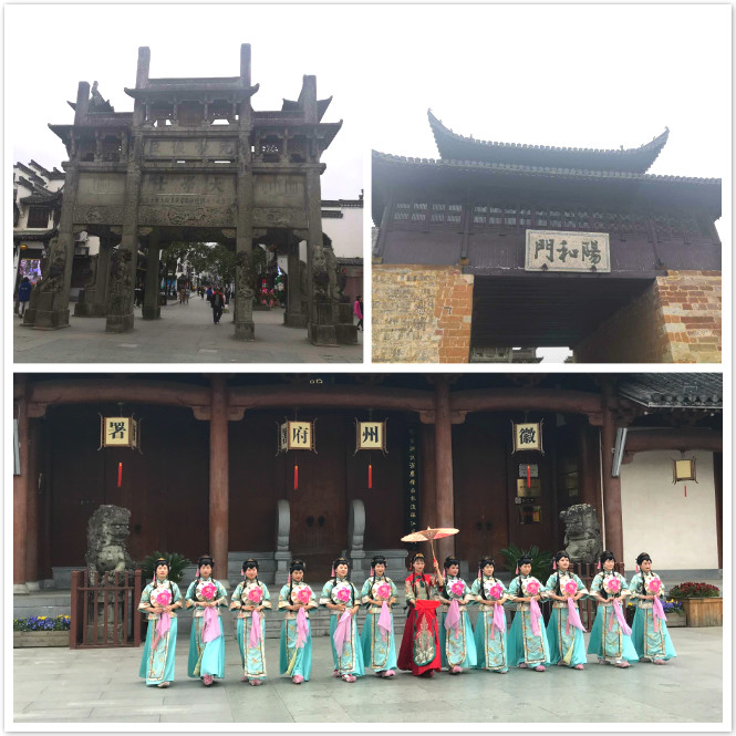“春盈歙县繁荣地,福满徽州浪漫天”,结束了上午愉快的新安江画廊之行,小伙伴来到了中国四大古城之一的徽州古城。这是一座具有独特“城套城”风格的古城,景区内古民居群交织在一起,颇具古朴的风采,像一座气势磅礴的历史博物馆。在今天,城内仍是世代徽州人居住的场所,小伙伴们行走其中感受其浓浓的历史沧桑感和厚重感,仿佛穿越而来一般。