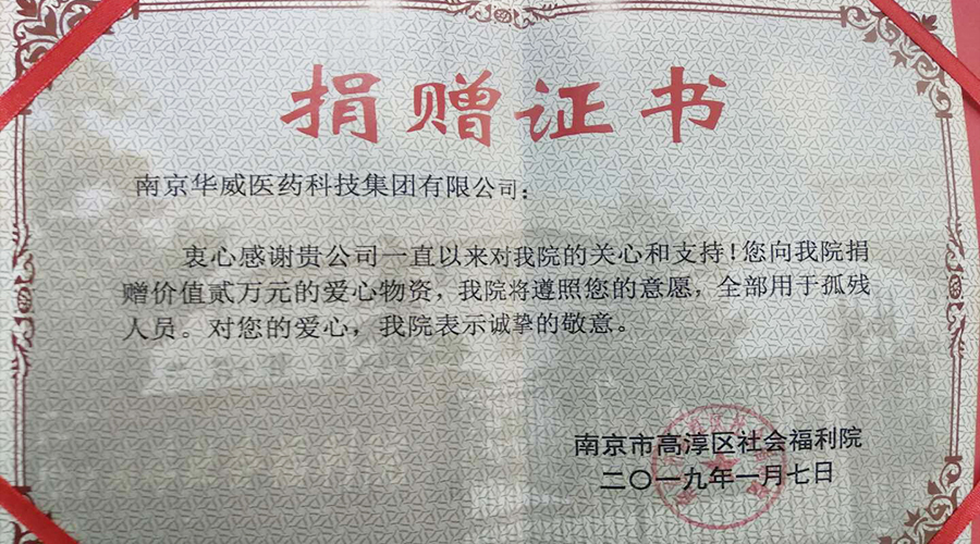 1月7日,伴随着清晨的第一缕阳光,南京华威医药集团工会主席徐峰、人力资源总监施礼慧等领导共同走进高淳市社会福利院,听孔院长细致讲解福利院的具体情况,与孤残儿童亲切交流,为冬日里的福利院送去一丝温暖。