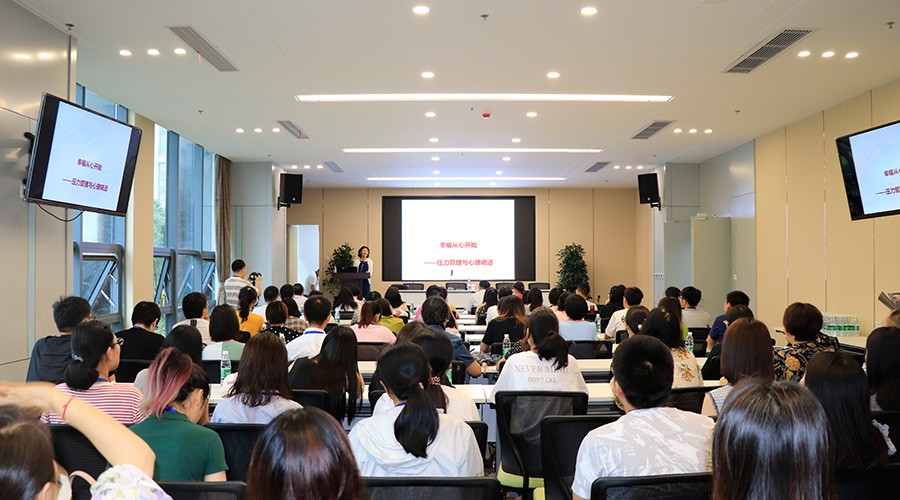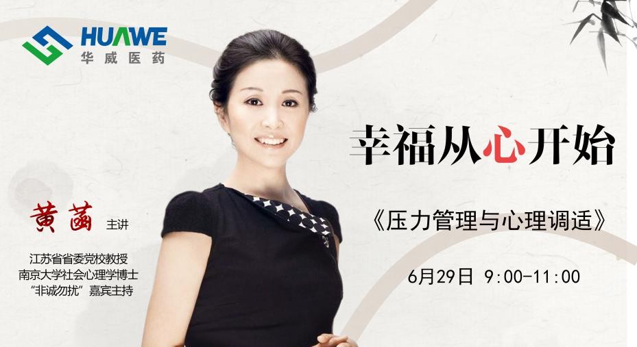 2019年6月29日上午,细雨蒙蒙阻挡不了慕名而来的人们纷至沓来的脚步,《非城勿扰》嘉宾主持、江苏省委党校教授、南京大学社会心理学博士黄菡老师,应邀走进华威医药,为约150位华威员工带来了一场精彩纷呈的压力管理与心理调适人文讲座。