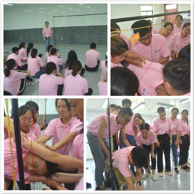 其中,让大家印象深刻的“生死电网”项目,是需要所有队员在规定时间内在织好的一张"电网"中通过, 这张网上是大小不一的洞口, 从网的一边依次通过到达另一边。因为洞口大小不一,小伙伴在最初穿越的时候,很快就放弃了认为很小且不能穿过的洞口,然而,在教练的指导下,让许多看似不可能完成的任务,在大家的齐心协力下被逐个击破。